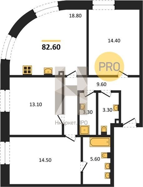 Площадь от 82.6 м2