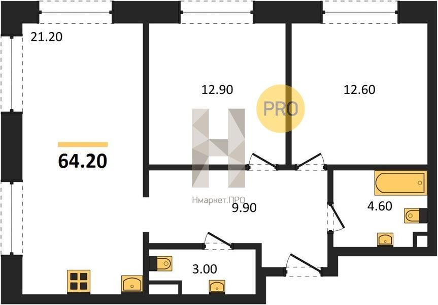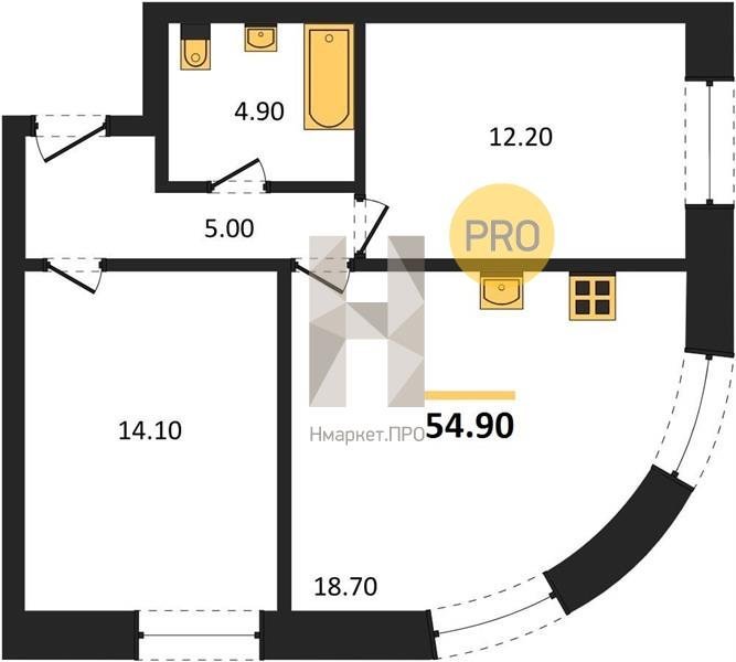 Площадь от 54.9 м2