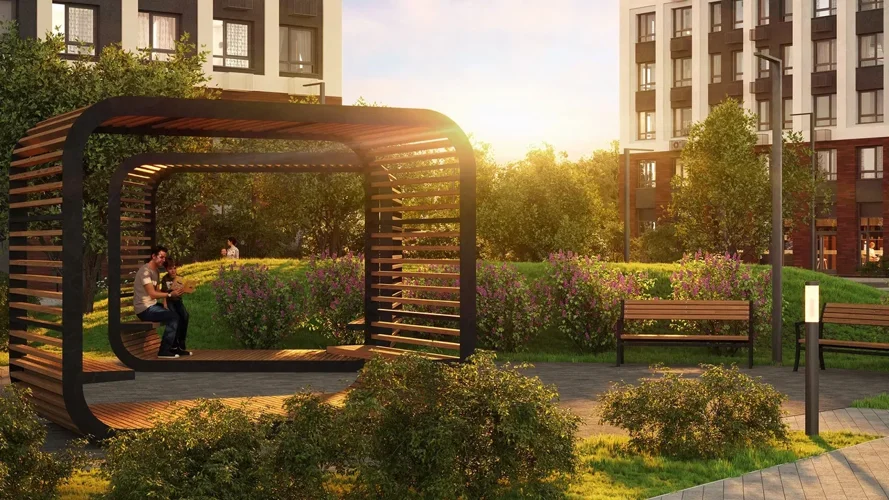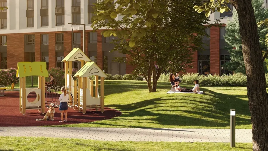 В распоряжении жителей — благоустроенные дворы без автомобилей, современные детские и спортивные площадки и отапливаемые подземные паркинги